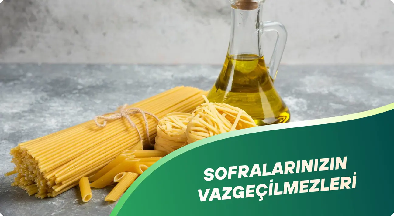 Günlük mutfak ihtiyaçlarınızı taze, doğal ve güvenilir ürünlerle karşılamak artık çok kolay! Salça, sirke, zeytinyağı, makarna ve daha fazlasını kapsayan temel gıda kategorimiz, evinizin ihtiyaçlarını hızlı ve kaliteli biçimde karşılamak üzere hazırlandı. Sağlıklı beslenmenin temelini oluşturan bu ürünler, sofralarınızın vazgeçilmez tamamlayıcısı olacak.